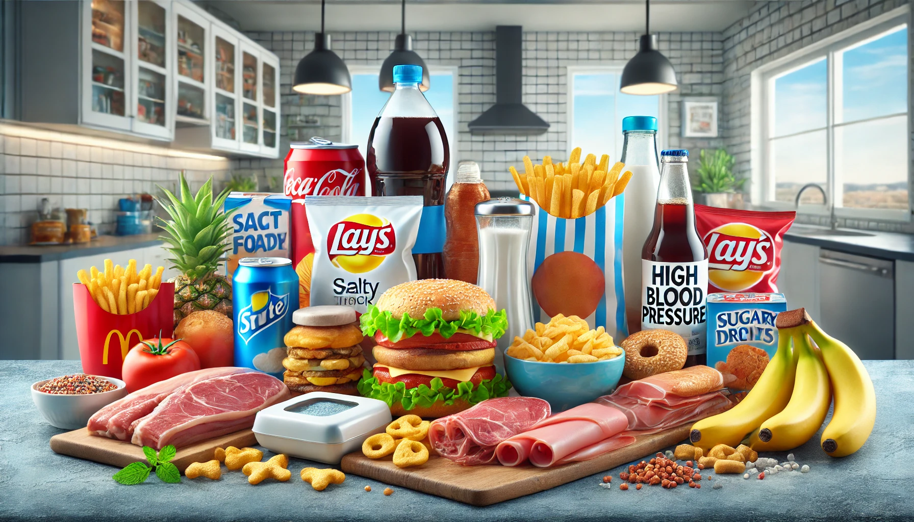 - 가공식품: 나트륨, 포화 지방, 설탕이 풍부하여 혈압을 높일 수 있습니다.
